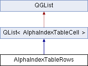 Public Member Functions inherited from QList< AlphaIndexTableCell > | |