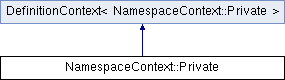 Public Member Functions inherited from DefinitionContext< NamespaceContext::Private > | |