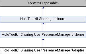 Public Member Functions inherited from HoloToolkit.Sharing.UserPresenceManagerListener | |