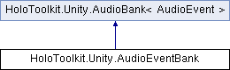 Public Attributes inherited from HoloToolkit.Unity.AudioBank< AudioEvent > | |